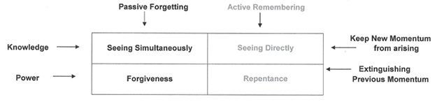 ABSTRACT: The Knowledge that results from Seeing Simultaneously and Seeing Directly keeps new Momentum from arising. The Power that results from Forgiveness & Repentance extinguishes previous Momentum. The Passive Forgetting of Who We Think We Are requires the Knowledge of Seeing Simultaneously and the Power of Forgiveness. The Active Remembering of Who We Are requires the Knowledge of Seeing Directly and Power of Repentance.