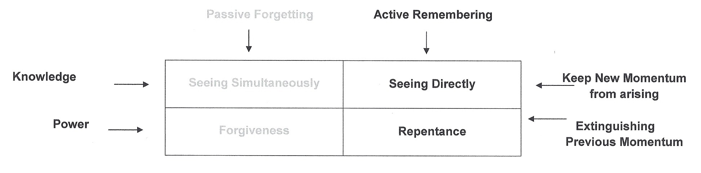 Now turning towards the complementary aspects of Remembering the Factual Self—Repentance and Insight—we will see that they are both active strategies that in their highest form do not create Psycho-Physical Momentum; we are simply learning the skillful means to both understand and care for what we are, rather than a picture of who we think we are: